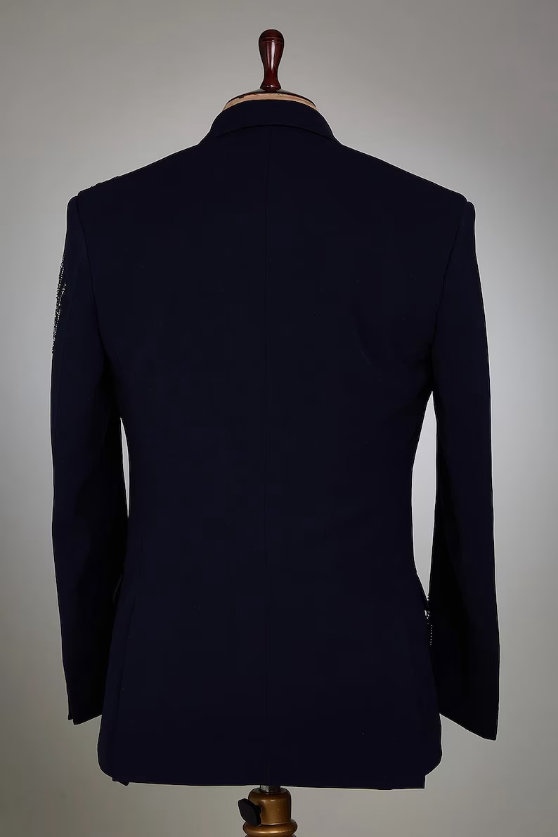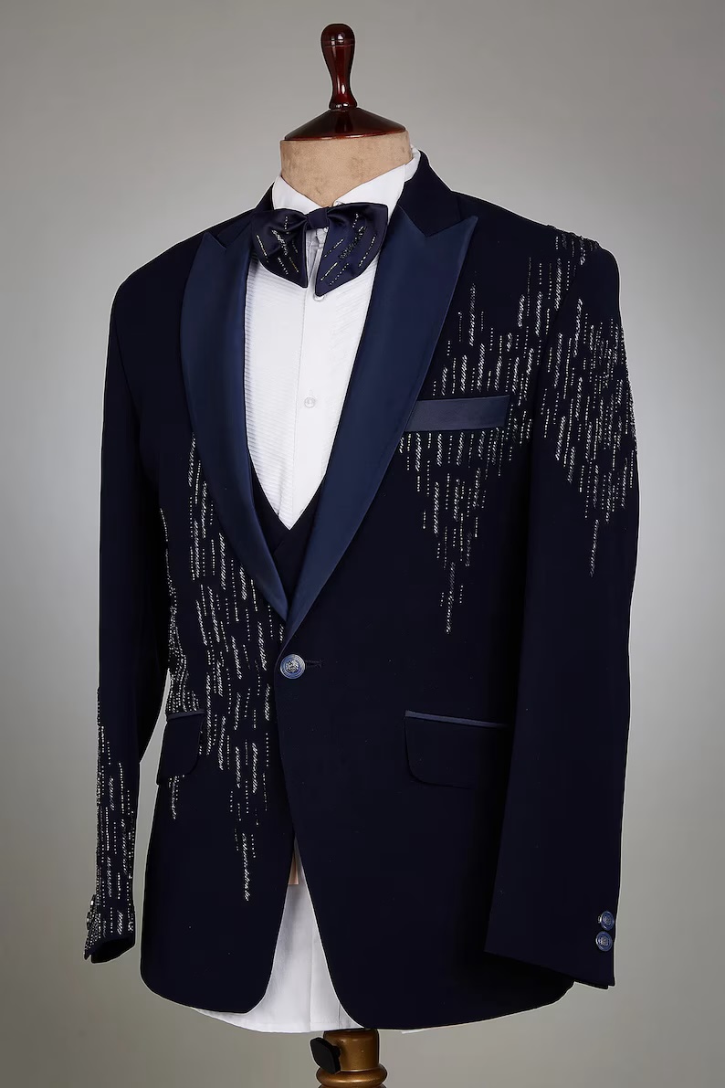 Black diamond Hand embroidered Tuxedo suit, diamond work tuxedo suit, Hand Embroidered Designer Tuxedo suit, Indian wedding suit, custom size